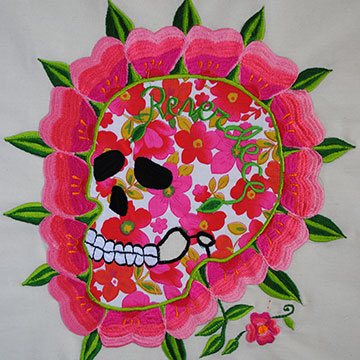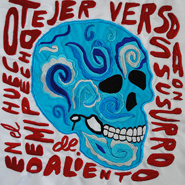 Dio poemas sobre el mito de la vagina dentada, imágenes de mujeres embarazadas flotando en cenotes en el silencio de la creación interior, zompantle de calaveras celebrando las muertes y cerámicas…