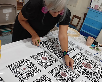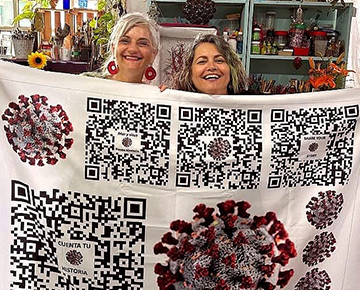 La diferencia de un solo fonema intercambiable en la palabra en español (R y D) señala implícitamente la precariedad semántica atribuida, un intercambio extendible a acrónimos vinculados con el virus y la pandemia misma: R de ácido Ribonucleico, D también de “Disease” en la asignación en inglés adoptada globalmente: COVID; ARN y/o ADN forman parte asimismo del código genético tanto de humanos como de los virus. “Bordar”, “to weave”, implica además la conexión entre tejido y texto, en una larga tradición que involucra tejido, palabra, y memoria, y que también se asocia con la mujer como tejedora, esto es, como creadora de urdimbre, trama y tejidos, y archivadora de la memoria colectiva. De idéntica raíz etimológica, el verbo en latín “texere” (Textile).