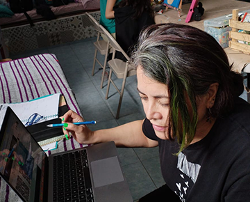 “Entre Bastidores, texto, tejido, dígito” es un proyecto de arte colaborativo, realizado por las artistas visuales y escritoras Tina Escaja y Mercedes Bautista, surge de una residencia artística realizada por Tina Escaja en el Corazón de la Tribu, espacio de creación dirigido por Mercedes Bautista.